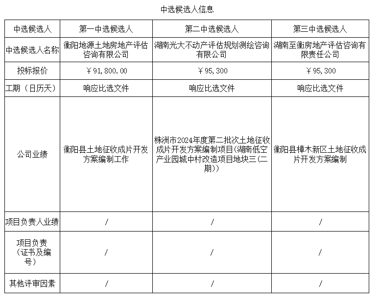衡陽(yáng)市植物園片區三宗土地征收成片開(kāi)發(fā)方案編制項目咨詢(xún)服務(wù)比選中選候選人公示