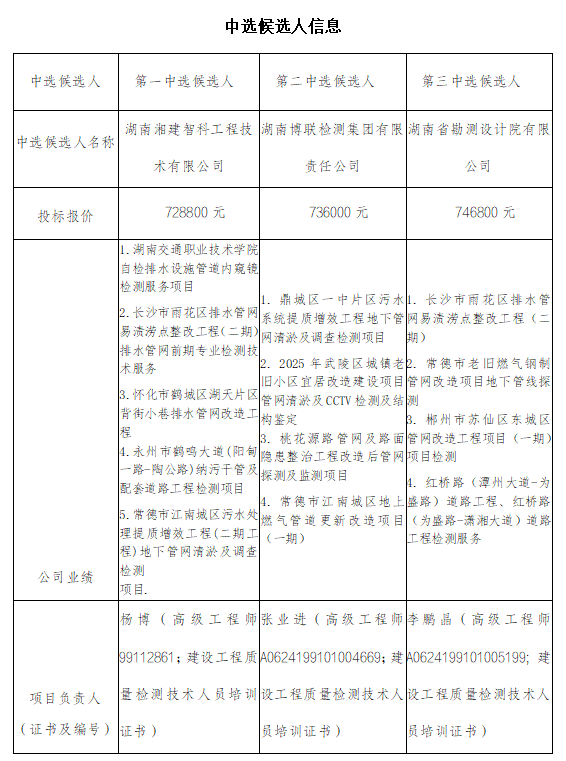 衡陽(yáng)紡織機械廠(chǎng)地塊地下管網(wǎng)盲探及檢測工程于2025年11月17日在衡陽(yáng)國投4棟3樓評標室進(jìn)行了比選開(kāi)標、評標活動(dòng),評標委員會(huì )按照比選文件及相關(guān)法律法規規定進(jìn)行評審,推薦以下三名中選候選人(排序),現將相關(guān)信息予以公示。