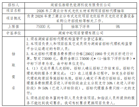 2026年工商業(yè)分布式光伏主材采購項(xiàng)目招標(biāo)代理抽取結(jié)果公示
